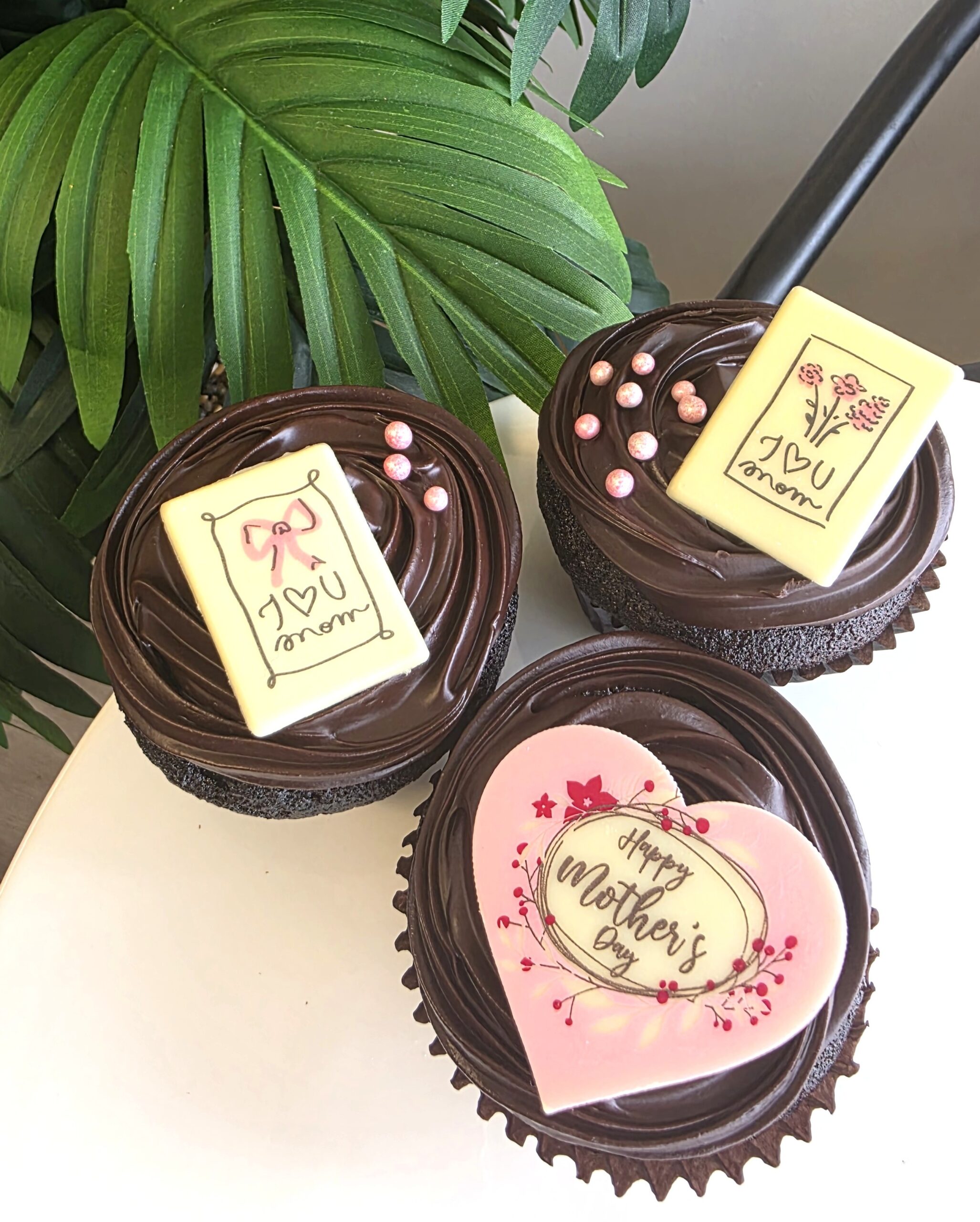 Box of 4 Chocolate or Red Velvet Cupcakes especially decorated for Mothers Day